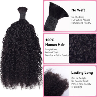 #1B Natural Black Boho Braids France Curly No Weft Bulk Hair for Human Hair CVOHAIR