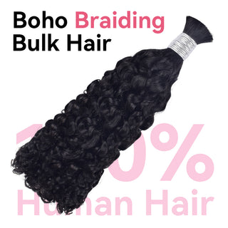 #1 Jet Black Deep Wave Bulk Human Hair For Boho Braids CVOHAIR