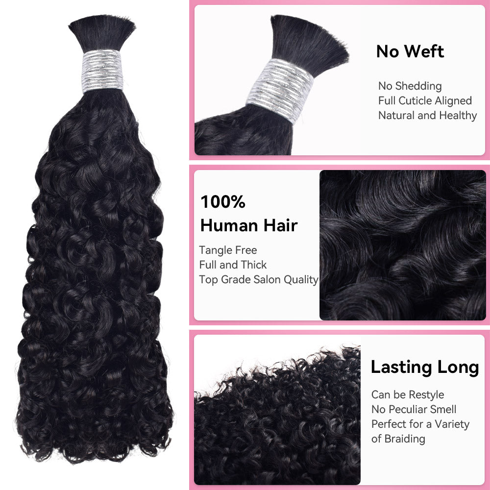 • Hair Quality: High quality Burmese Curly bulk human hair for micro braiding no weft, tight & neat, tangle & shedding free, soft & bouncy, no louse & no smell & no lice, can be restyled as your hair.