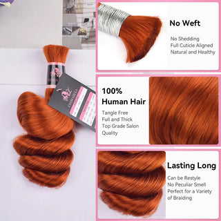 #350 Ginger Water Wave Bulk Human Hair For Braiding CVOHAIR