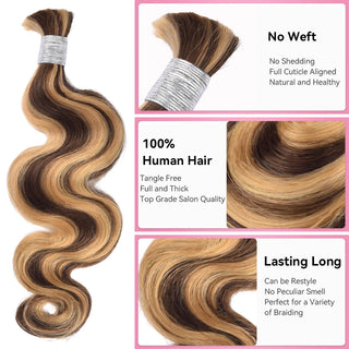 #4/27 Ombre Highlight Deep Wave Bulk Human Hair For Braiding CVOHAIR