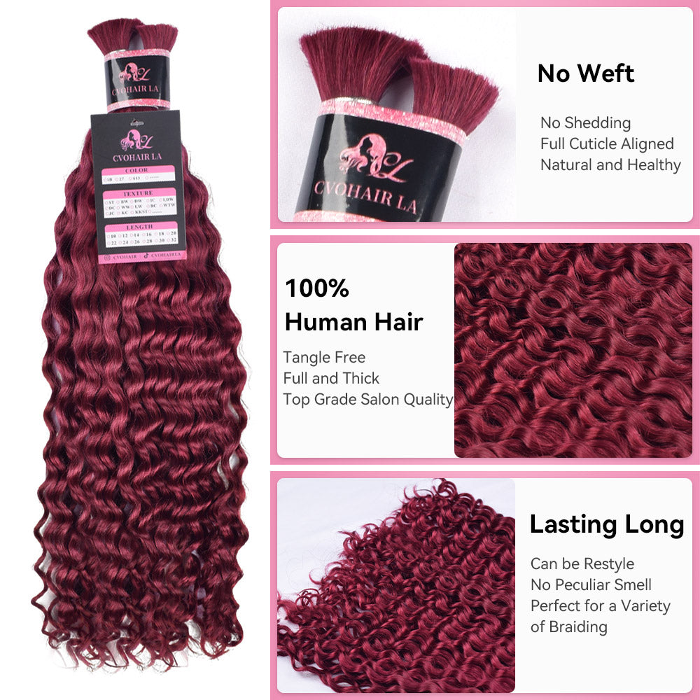 #BUG Burgundy Deep Curly Human Hair For Boho Braids CVOHAIR