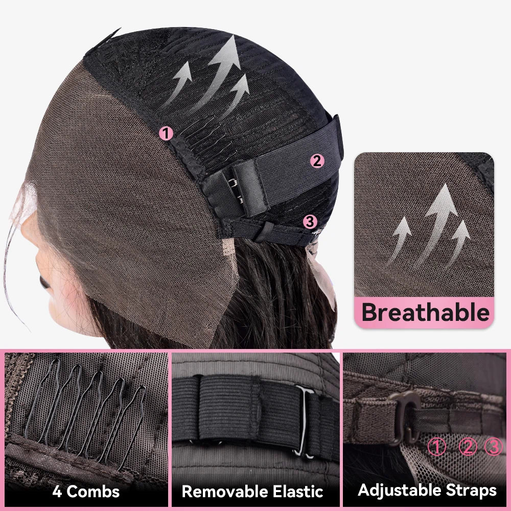 • 【Lace Front Human Hair Wigs Cap】: Medium cap circumference 22.5 inch, with 4 combs and glueless adjustable straps, can be better fixed position. Glueless can help you better fit on the head, safe and comfortable, strong elasticity, good air permeability.