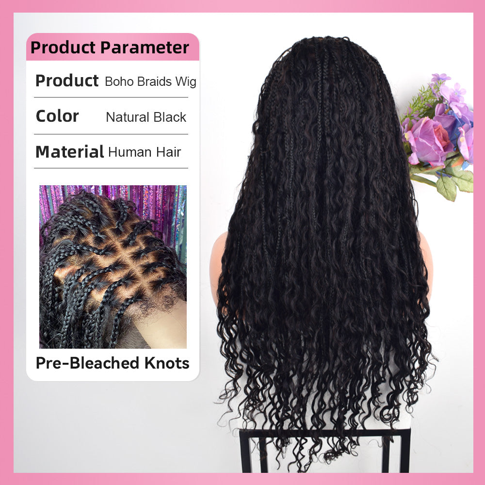 【Full Lace Construction – Full Lace Natural Look】Crafted with a full lace base, this Boho braided wig offers a realistic appearance from every angle. The hand-tied lace ensures a seamless blend with your natural hairline, giving you the freedom to part and style however you like.